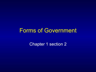 . Government Chapter 1 Section 2 Forms of Government a government in which a single. Forms of Government pg. Forms of Government Use the chart below to compare the democratic.